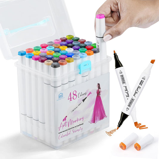 12 Colours Dual Tip White Art Markers with Sturdy Carrying Case Chisel & Fine Tip Marker Pens for Kids Adult Beginners Art Class Alcohol Markers for Painting Sketching Drawing Colouring