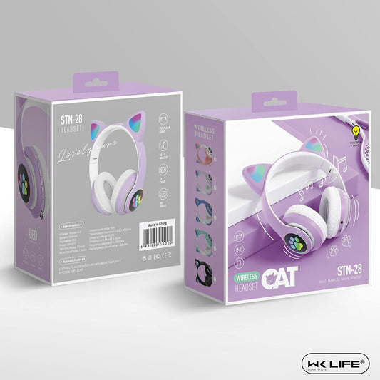 Kids Headphones, Cat Ear Kids Bluetooth Headphones, Led Light Up Over Ear Kids Wireless Headphones , Foldable Over-Ear Headphone For Pc/Pad
