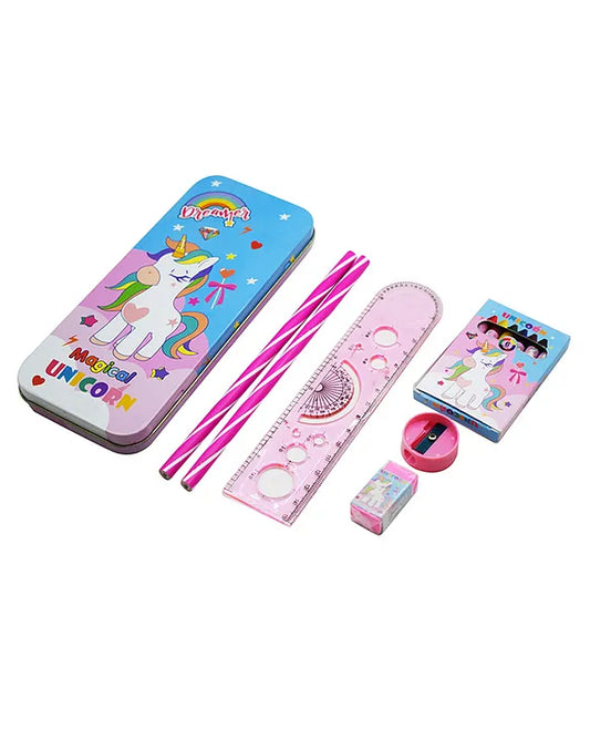 Stationery Gift Set with Pencil Box, Pencils, Eraser & Sharpener & Crayons Perfect for Students & Creative Minds Birthday Return Gifts (Unicorn 1 Pc)