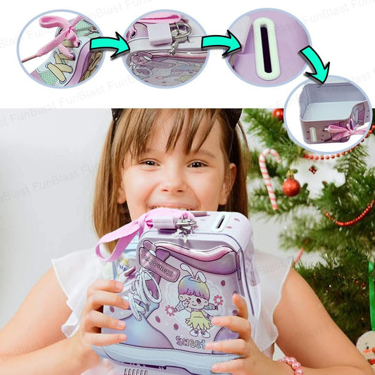Shoes Shaped Coin Box, Money Saving Metal Coin Bank with Key and Lock for Kids, Money Bank for Kids, Return Gift for Kids (Sweet)