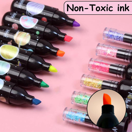Space-Themed Mini Highlighter Pen, Fine Tip and Grip Marker Pen, Highlighters Stationery Items for Kids and Adults, Ideal Gift for Boys and Girls...