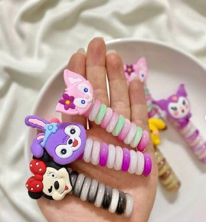 Rainbow Color Telephone Wire Rubber Bands for Girls Kids Braided Spiral Hair Ties Cute Cartoon Characters Multi Pattern Ponytail Maker Elastic Hair Accessories for Girls.