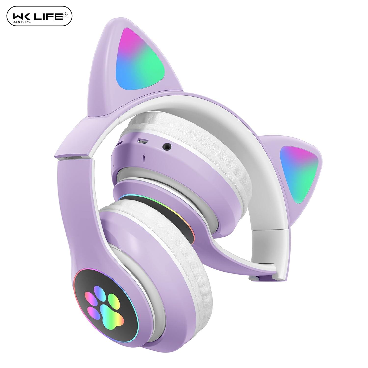 Kids Headphones, Cat Ear Kids Bluetooth Headphones, Led Light Up Over Ear Kids Wireless Headphones , Foldable Over-Ear Headphone For Pc/Pad